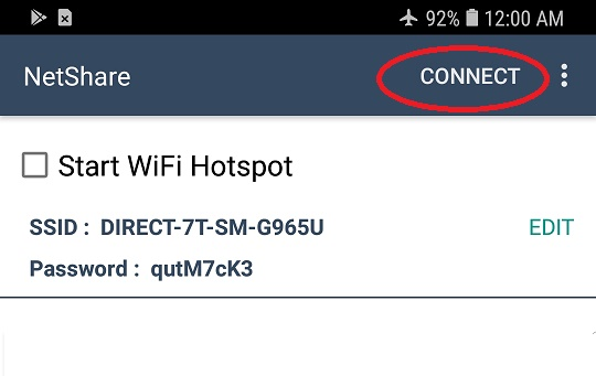 - Tap on \'CONNECT TO NETSHARE\' button and wait until the app connects